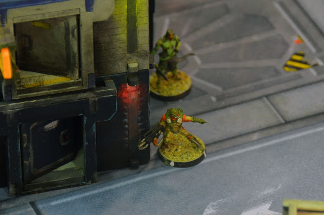 In my first game I played against Nigel king. I had also played him at two previous events and we were at one victory each so I challenged him of the internet to a grudge match in the first round. It was looking bleak to begin with. he was using his imperial service. im not that clued up on the units so all I can tell you is he had a Pheasant Rank agent with spit fire run to the middle of the table linked with 4 other dudes to grab the objective and drag it back to his lines. But little did he realise one of my camo markers was a tank hunter with AP HMG. it was quite order intensive but the tank hunter blasted away 4 guys into the unconscious state, this gave my Zouave the chance to pop out of cover and he was surrounded by the entire link on a small roof. Never used a Zouave before but he is worth every point considering he seems to have every weapon under the sun and can set up using mechanised deployment. In my excitement though He jumped down to the ground floor and pumped 8 dice from his machine pistol to make sure no one was getting up . . . then i instantly realised one of my secret objectives was to Coupe De Grace one of the guys.